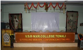![]() | VSR & NVR College is one of the biggest colleges in Andhra Pradesh. It has an AUDITORIUM renovated by the Alumni Association of VSR&NVR with the financial support of Dr. CHITTEMMA, an NRI from USA. It is renamed DR. CHITTEMMA and SUBBA REDDY KALAMANDIRAM and it can accommodate 1000 people. |