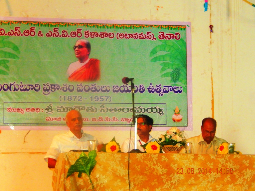 With great joy VSR & NVR College celebrated the 143rd birthday of Sri Tanguturi Prakasham Panthulu garu, the first CM of the new Andhra State, whose life is a source of inspiration for the and the old. Starting his career as an eminent lawyer, he sacrificed everything for the good of the country. With invincible courage, he stood before the British soldiers, undeterred, with a bare chest challenging them to shoot him, if they can. Sketching Andhra Kesari’s life, the Chief Guest Sri Marouthu Seetharamaiah, the ex President GDCC Bank and the Principal, Sri V. V. Sekhara Prasad inspired the students. The Chief Guest quoted a number of similarities between the life of Tanguturi and Nannapaneni, the Founder Secretary of VSR & NVR College. The Secretary and Correspondent Sri Nannapaneni Sudhakar congratulated the Government of Andhra Pradesh for declaring Andhra Kesari’s Birth Anniversary as State festival. Trying to instill the spirit of patriotism into the students, he delved at length into the lives of Sri Tanguturi, Mahatma Gandhi , Sri Potti Sreeramulu and many more , who dedicated their lives for the sake of our state/ nation. He expressed his agony at the lack of enthusiasm of the youth to gain knowledge about the freedom fighters, the fruits of whose sacrifices, they have been enjoying. He hoped that such festivals will inspire the youth and make them walk on the right path. Staff and students spoke on this occasion. |