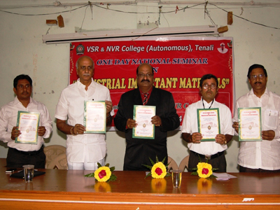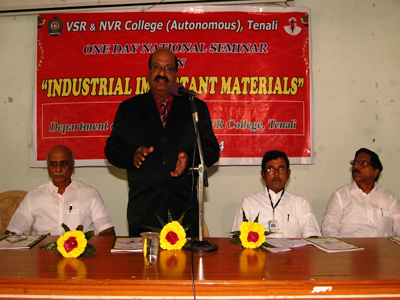 National Seminar organized by The Department of PHYSICS, V S R & N V R College, Tenali on ” INDUSTRIAL IMPORTANT MATERIALS”, 0n 06-11-2014 In Ragland Memorial Seminar Hall Chief Guest : Prof. K V Murthy, M S University of Baroda, Vdodara, Gujarat
